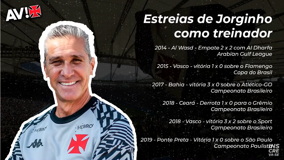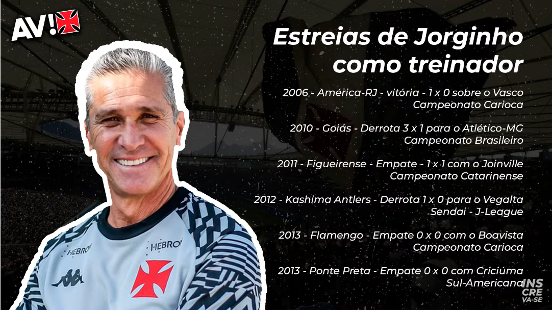 Jorginho tem 8 vitórias, 5 empates e 4 derrotas em suas estreias como técnico; veja o retrospecto