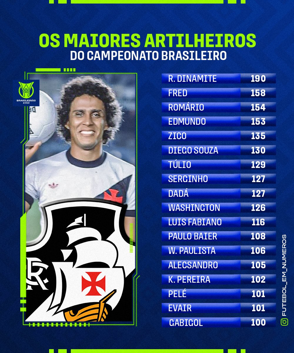 Twitter do Campeonato Brasileiro exalta Roberto Dinamite, maior artilheiro da competição