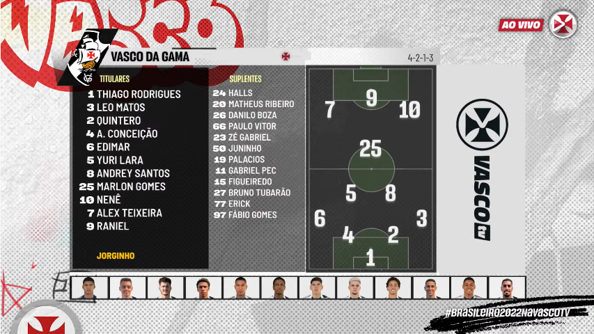 Veja a disposição tática do time titular do Vasco deste domingo