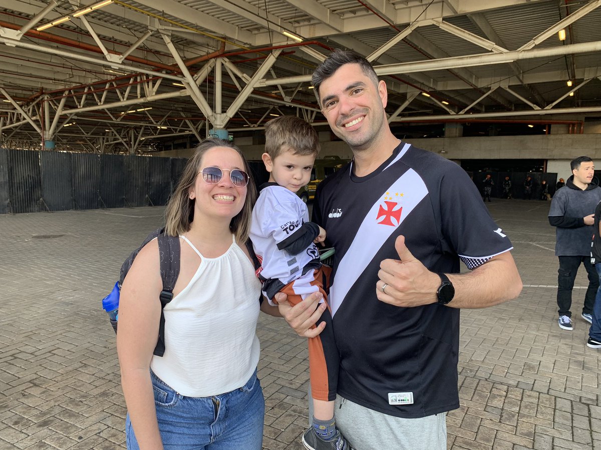 Casal vascaíno que mora no Rio Grande do Sul leva o filho para a Arena do Grêmio; veja foto