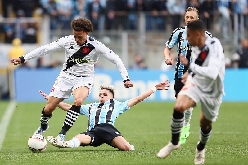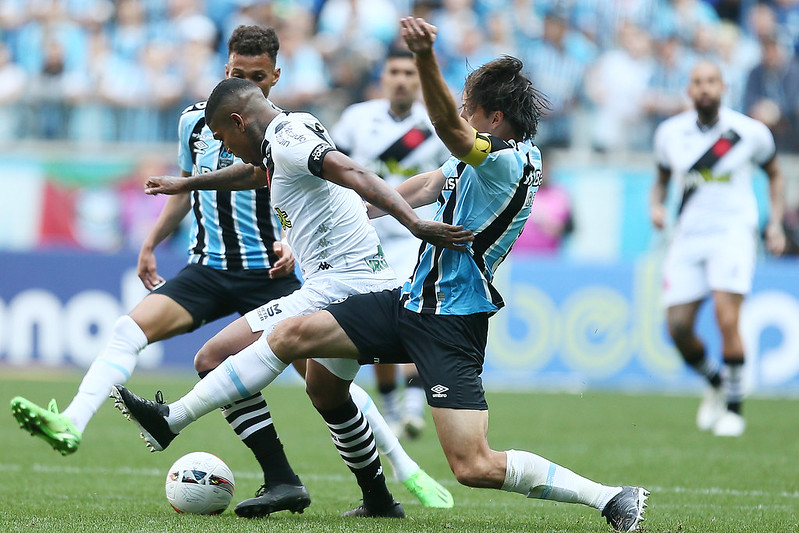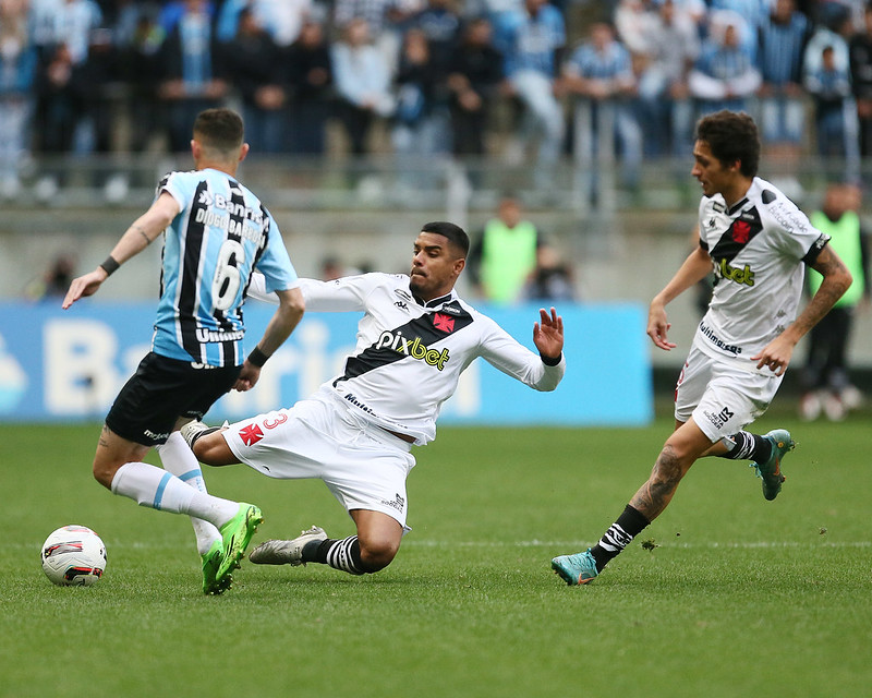 Nos acréscimos, Gabriel Teixeira ficou cara a cara com Thiago Rodrigues, mas o goleiro do Vasco brilhou. O Grêmio ficou com a vitória e aumentou o drama carioca fora de casa na Série B.