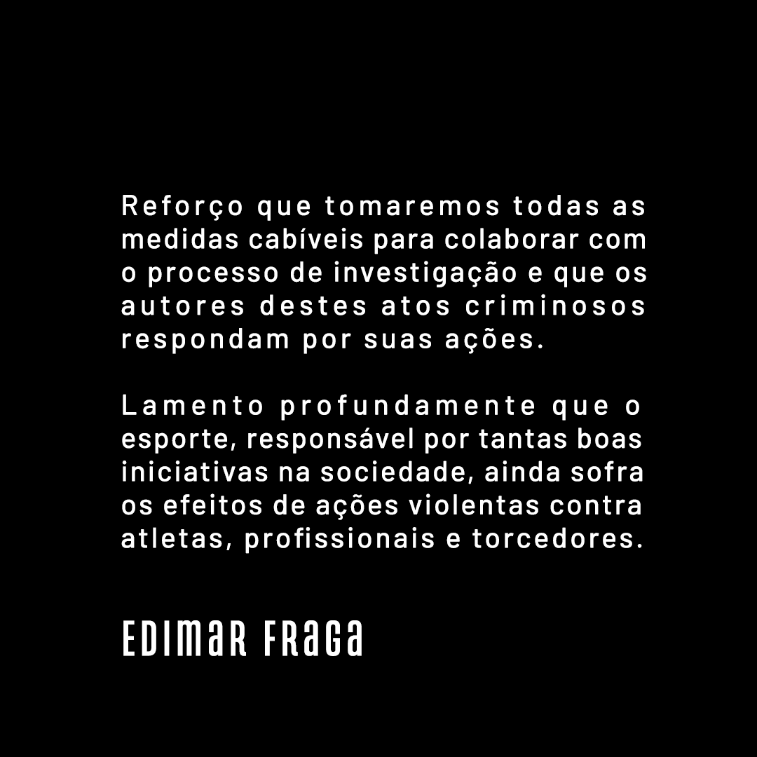 O Clube reforça seu compromisso na luta contra todos os tipos de violência e informa que está dando todo suporte necessário ao atleta.