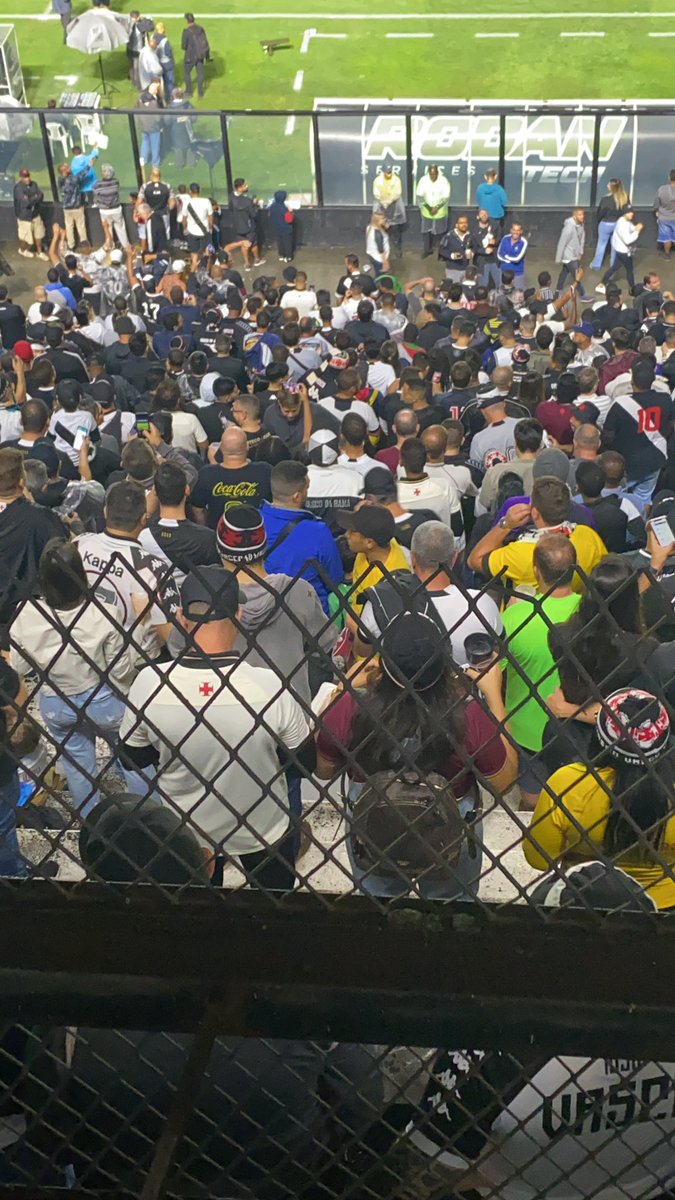 Vasco estreia o uniforme novo, que é branco, e a camisa vinho de goleiro. As camisas já estão fazendo sucesso na arquibancada. Na segunda foto dá para ver uma galera com a de goleiro já. #trcolina