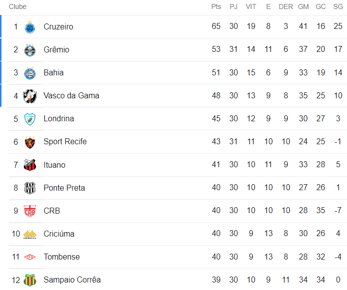 Na abertura da 31ª rodada do Brasileiro da Série B, o Sport foi derrotado pelo Grêmio por 3 a 0 e se manteve 5 pontos atrás do Vasco.