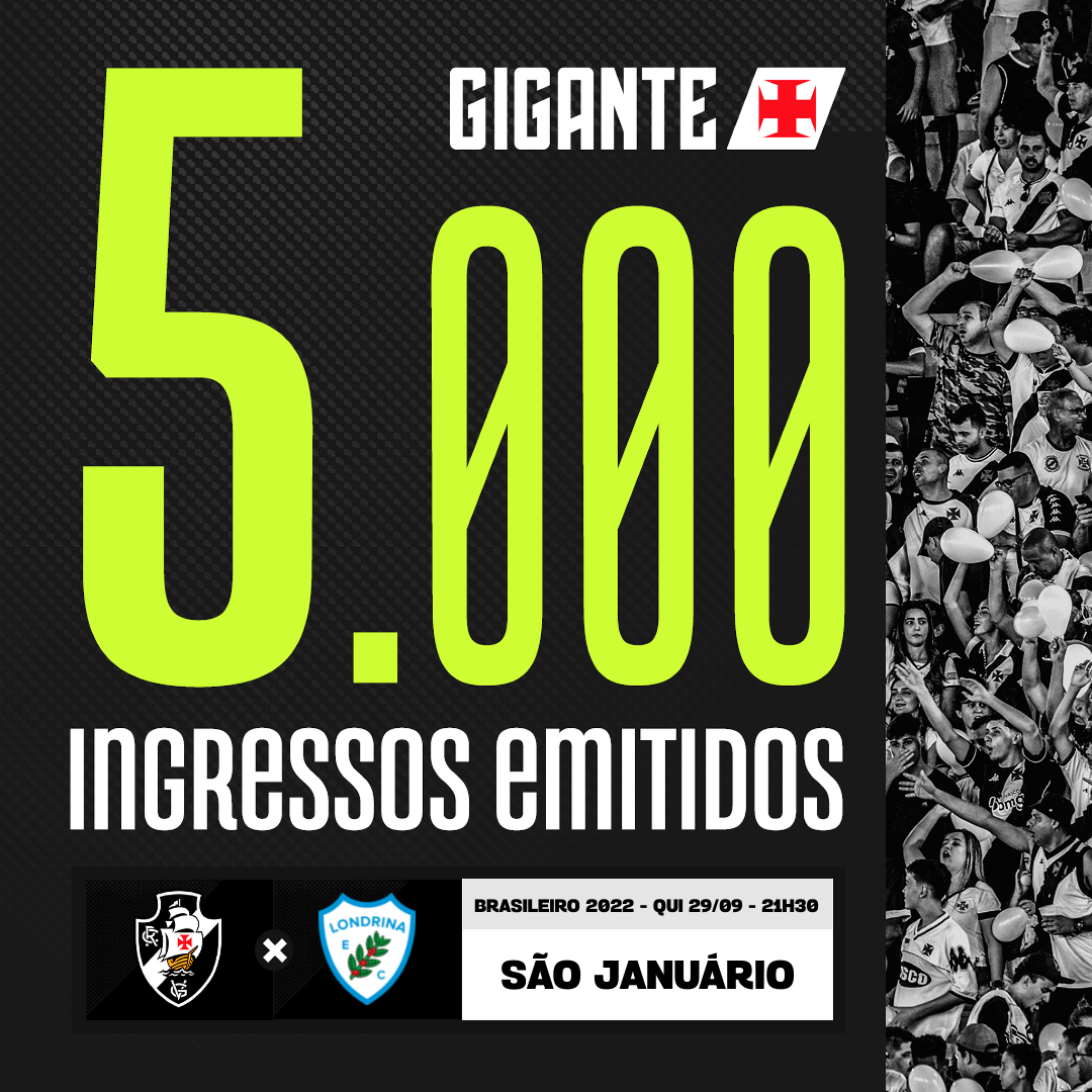 Mais de 5 mil ingressos já foram emitidos para o jogo contra o Londrina em São Januário.