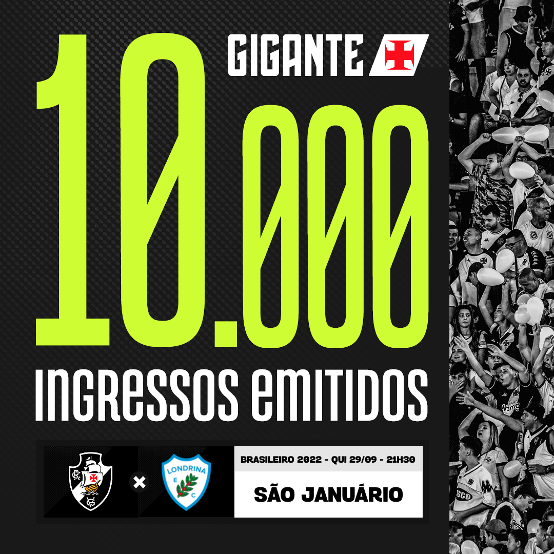 Já foram emitidos mais de 10 mil ingressos para o confronto contra o Londrina, no próximo dia 29, em São Januário.