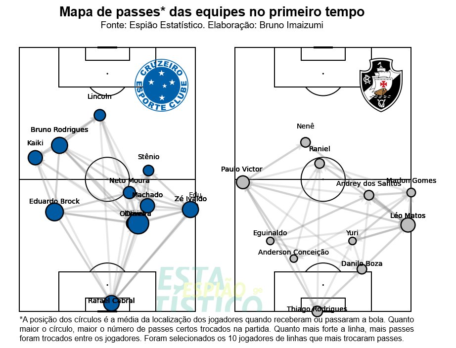 Confira os mapas de passes de Cruzeiro e Vasco no 1º tempo
