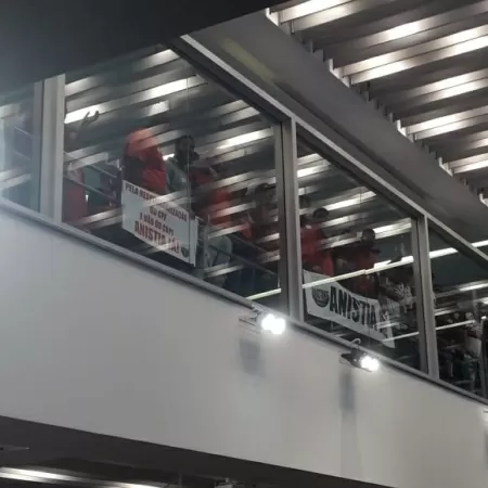 Representantes de organizadas do Botafogo, Flamengo, Fluminense e Vasco acompanharam a votação e levaram faixas com dizeres como "Anistia já", "contra a violência, discriminação e pelo direito de torcer" e "pela responsabilização do CPF e não do CNPJ".