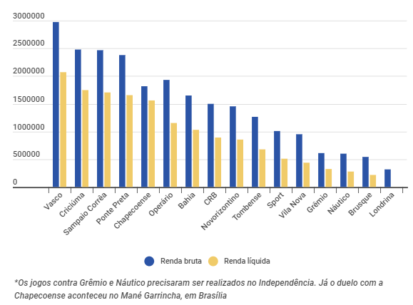 Os números do jogo diante do Vasco representam o melhor resultado financeiro do Cruzeiro com bilheteria em 2022. Até aqui, o maior lucro havia sido registrado na partida diante do Criciúma, pela 28ª rodada, em 4 de setembro, quando os mineiros embolsaram R$ 1.746.909,81 (veja resultados jogo a jogo no gráfico abaixo).