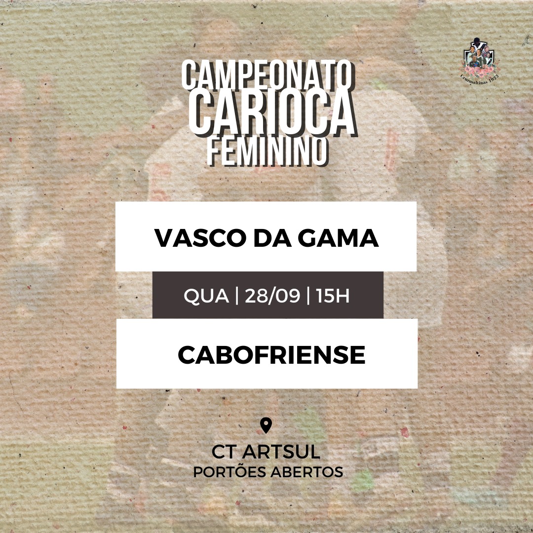 Vasco volta a campo para a reta final da primeira fase do Campeonato Carioca Feminino amanhã, contra a Cabofriense, no CT Artsul, às 15h.