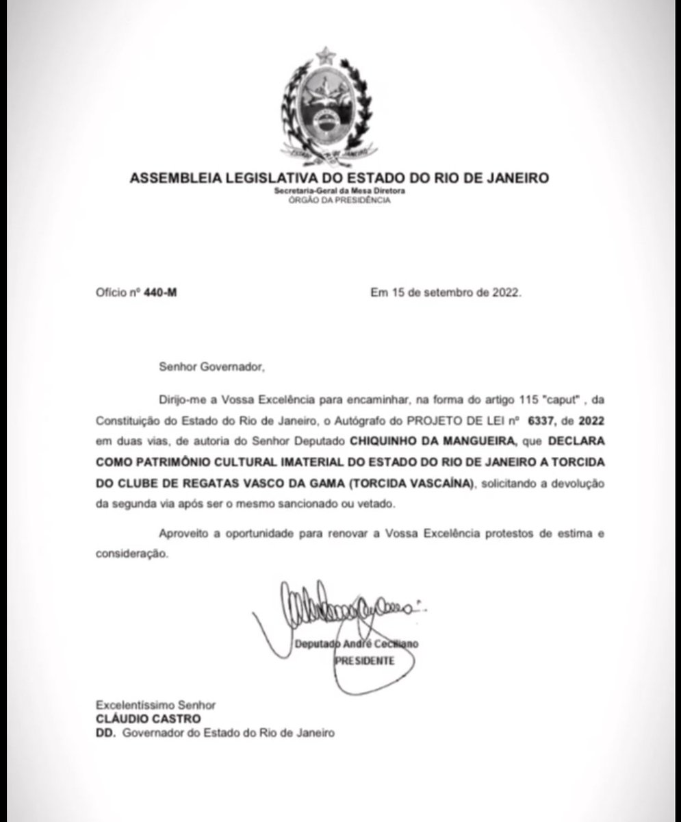 A torcida do @VascodaGama agora é Patrimônio Cultural e Imaterial do Estado do Rio de Janeiro! 💢