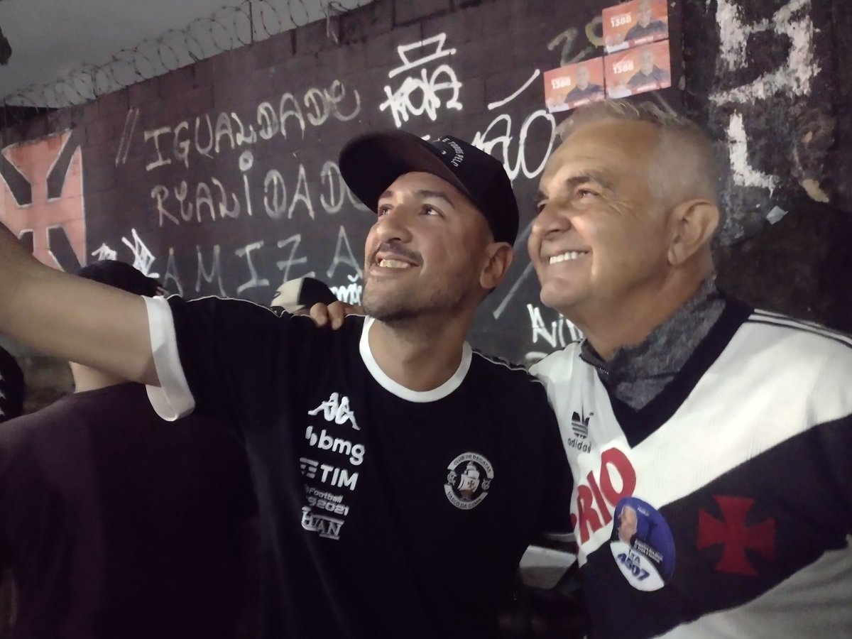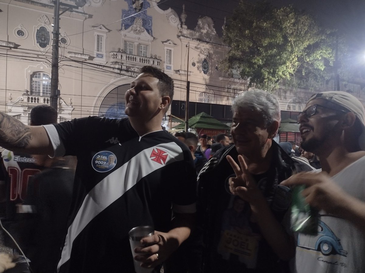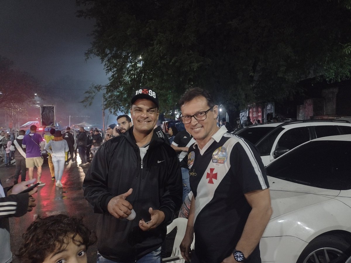 Tita, Sorato e Joel Santana presentes no pré-jogo do Vasco nos arredores de São Januário. Os três estão em campanha já que são candidatos na próxima eleição.