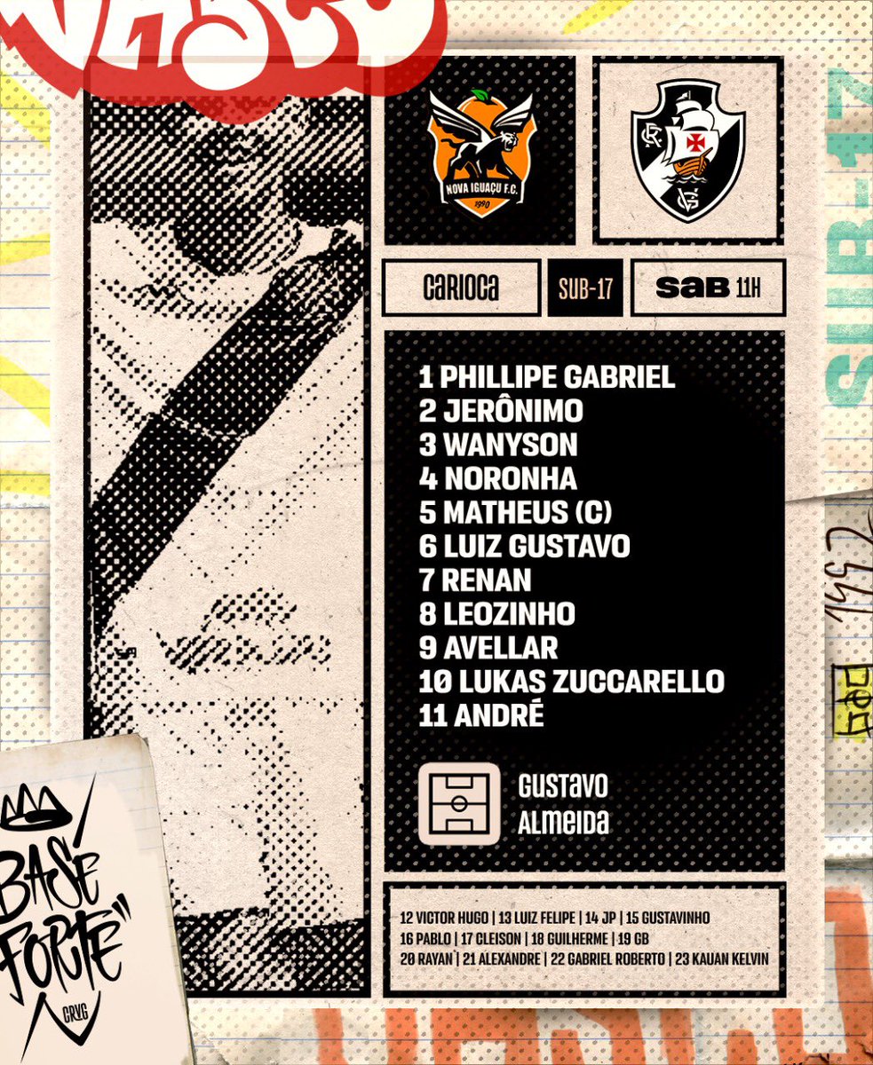 01/10/22 - Infantil: Confira a escalação do Vasco para o jogo contra o Nova Iguaçu