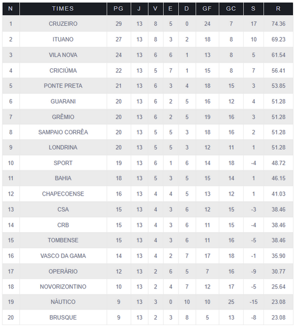 CLASSIFICAÇÃO DO SEGUNDO TURNO
