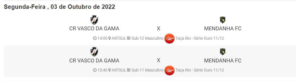 Pela Taça Edilson Silva, Vasco enfrenta o Mendanha nesta 2ª-feira no Sub-11 e no Sub-12