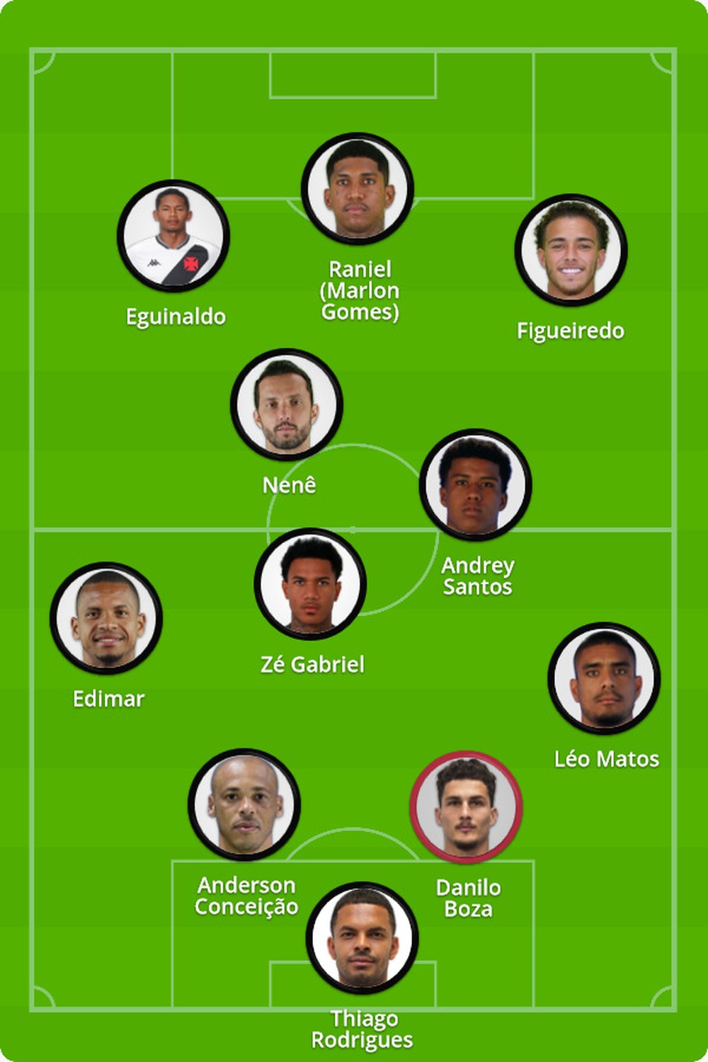 Provável time: Thiago Rodrigues, Léo Matos, Danilo Boza, Anderson Conceição, Edimar; Zé Gabriel , Andrey, Nenê, Figueiredo, Eguinaldo e Raniel (Marlon Gomes).