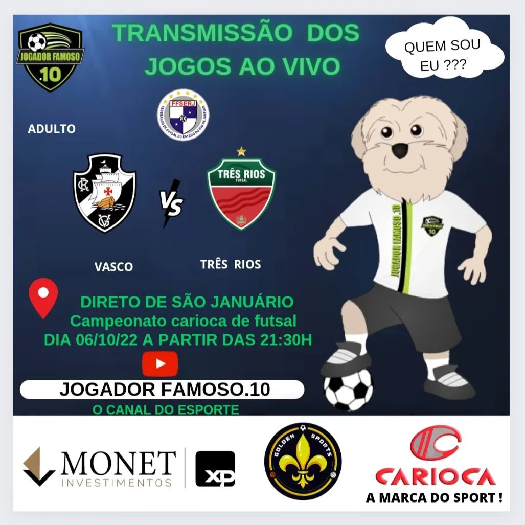Futsal: Vasco estreia no Estadual contra o Três Rios nesta 5ª-feira às 21h30 com Youtube