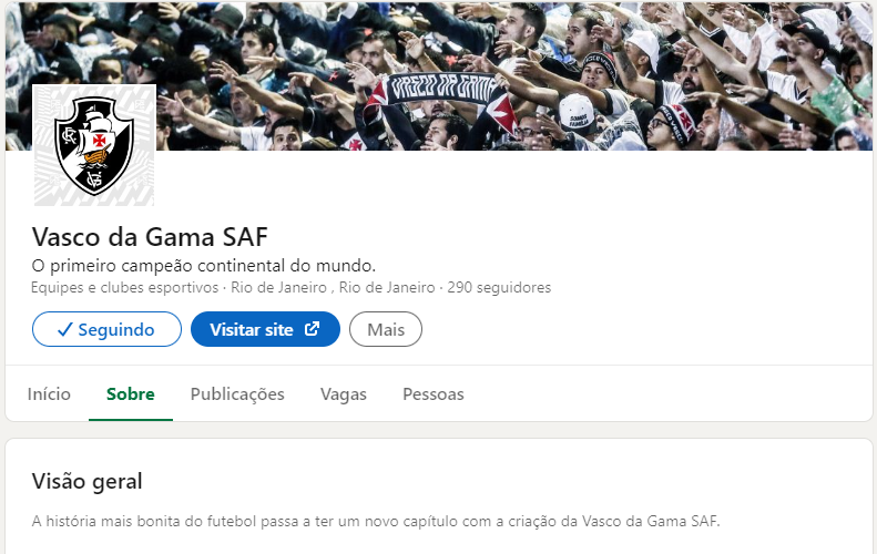 Movimento interessante do Vasco. Criou um novo perfil no Linkedin, para o Vasco SAF. Clube já tinha um perfil oficial - que continua no ar.