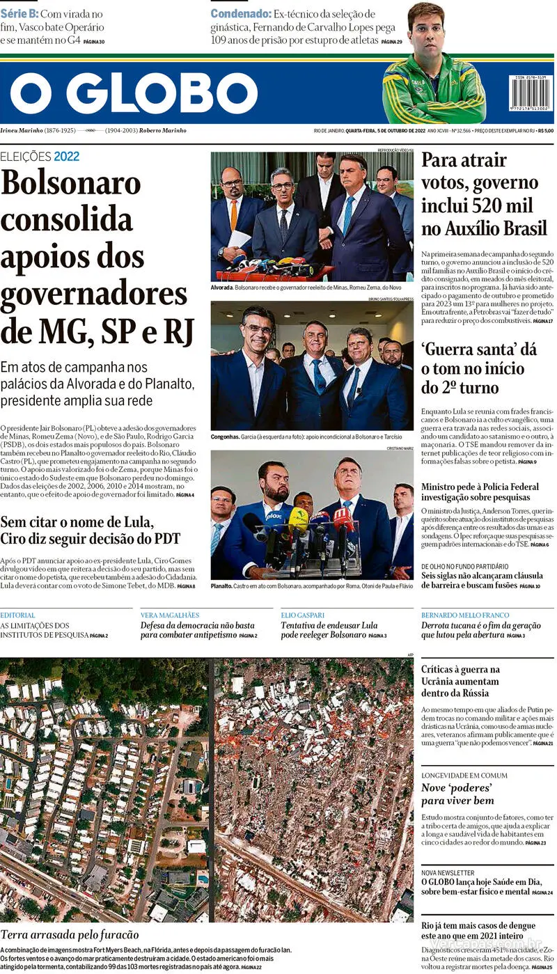 Pelo Brasileiro da Série B, o Vasco derrotou o Operário por 3 a 2 de virada, fora de casa, com gols de Bruno Tubarão e Alex Teixeira (2), interrompendo uma série de 8 derrotas como visitante. Veja as capas dos jornais.