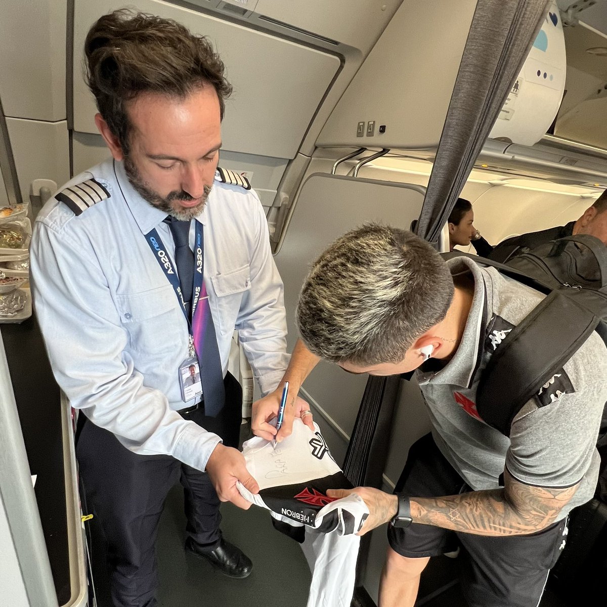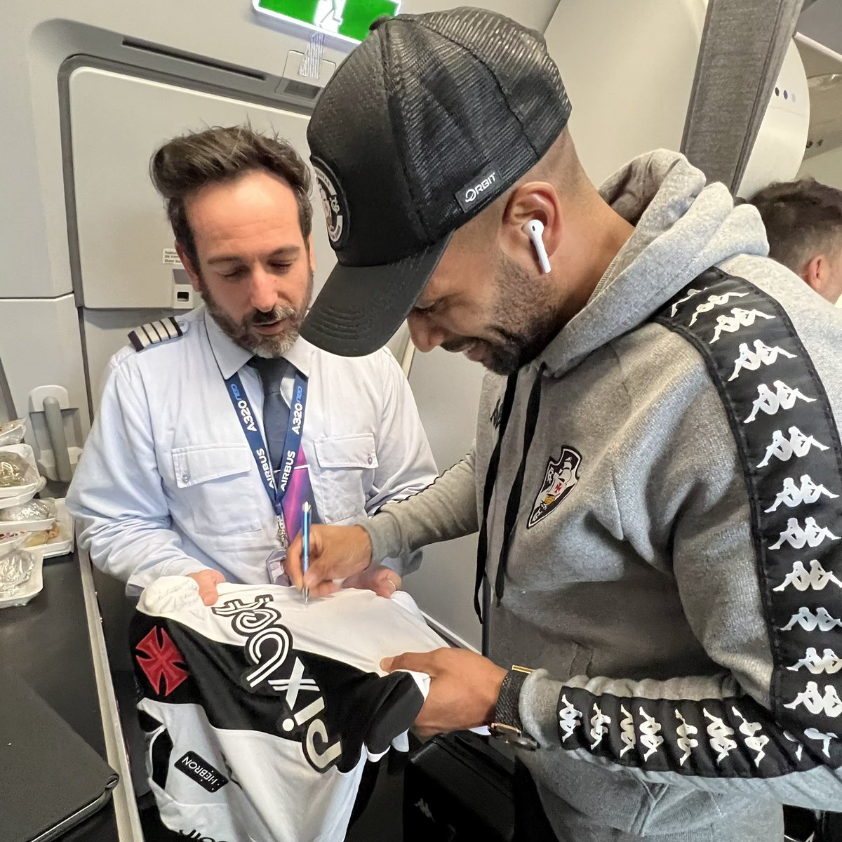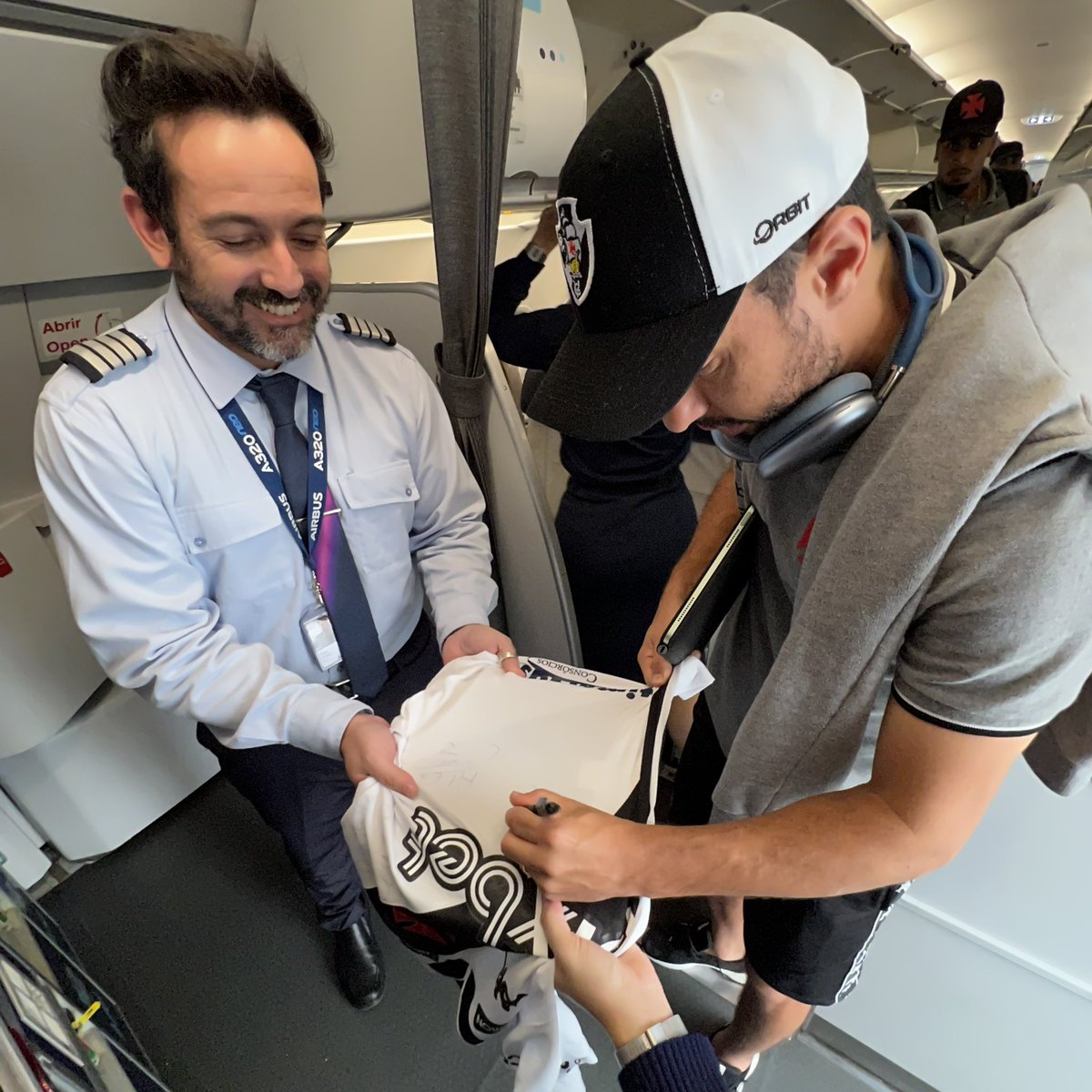 Felipe Oliveira, Vascaíno e comandante do voo de retorno ao Rio de Janeiro, viveu um momento especial e aproveitou para garantir alguns autógrafos 😄👊💢