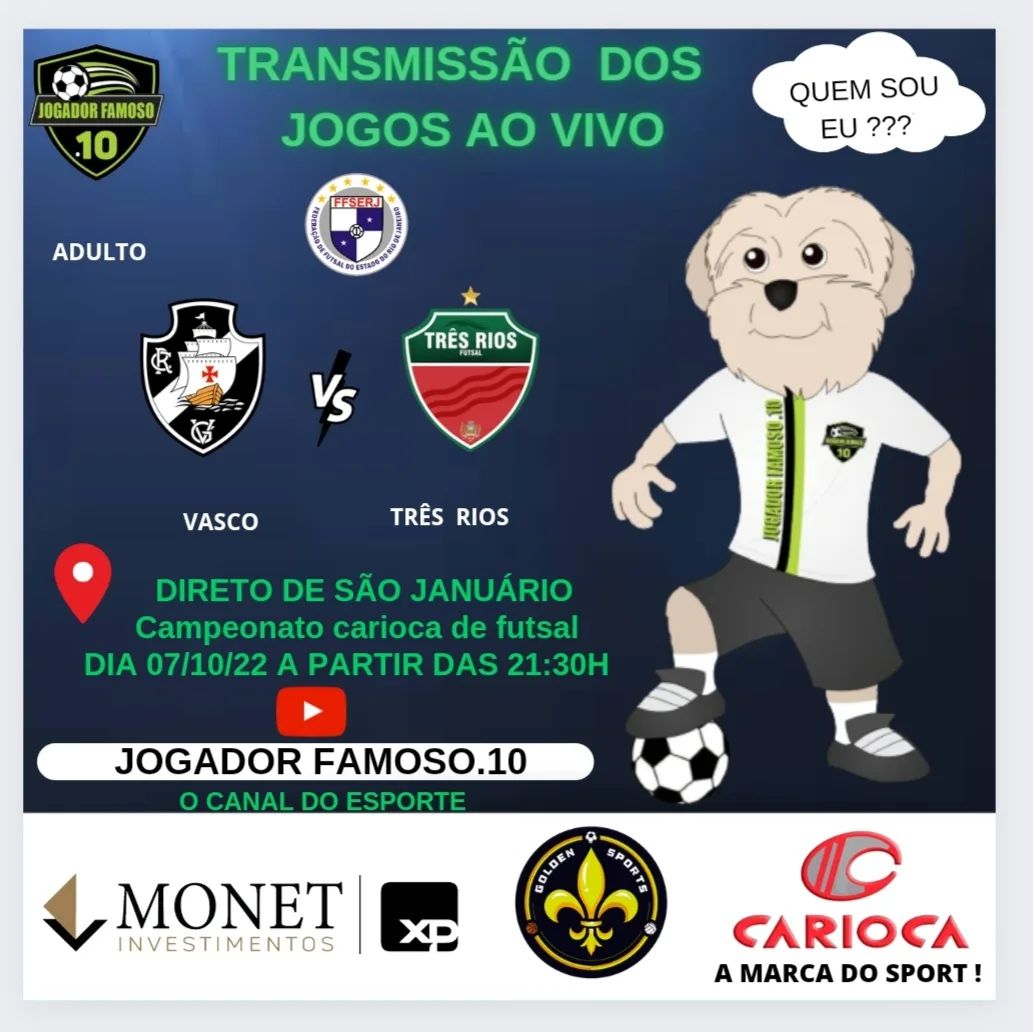 05/10/22 - Futsal: Vasco estreia no Estadual contra o Três Rios nesta 5ª-feira às 21h30 com Youtube