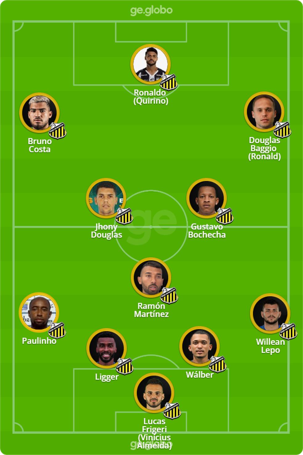 Provável escalação: Lucas Frigeri (Vinícius Almeida); Willean Lepo, Walber, Ligger e Paulinho; Jhony Douglas, Ramón Martínez e Gustavo Bochecha; Douglas Baggio (Ronald), Bruno Costa e Ronaldo (Quirino).