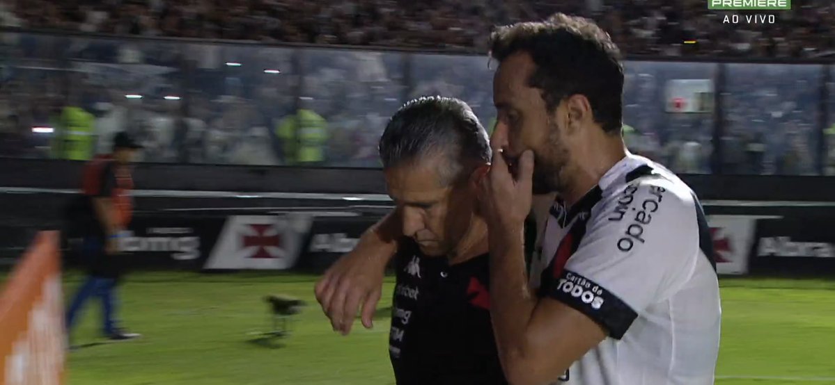 Nenê e Jorginho deixaram o campo abraçados e conversando.