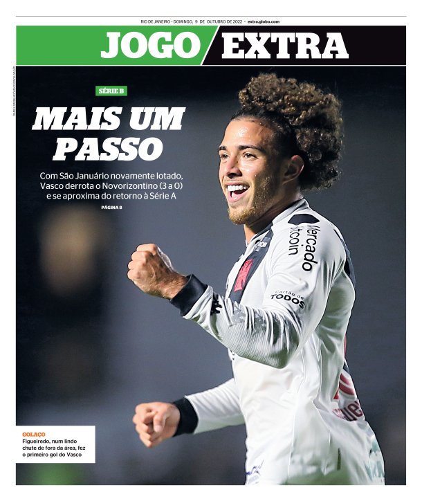 Pelo Brasileiro da Série B, o Vasco derrotou o Novorizontino por 3 a 0 em São Januário com gols de Figueiredo, Marlon Gomes e Léo Matos, dando mais um passo rumo ao acesso. Veja as capas dos jornais.
