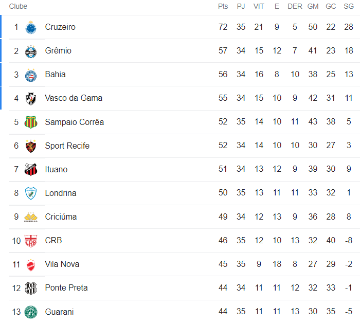 A 35ª rodada do Brasileiro da Série B teve 3 jogos nesta sexta-feira:
