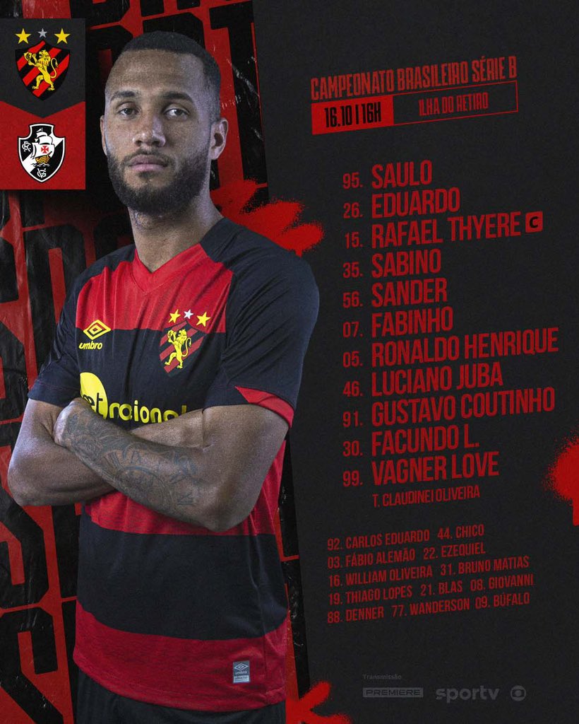 Confira a escalação do Sport para o jogo contra o Vasco