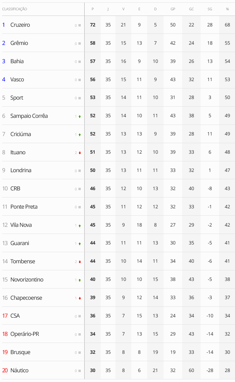 Terminada a 35ª rodada do Brasileiro da Série B, o Vasco, que empatou com Sport por 1 a 1, manteve-se na 4ª colocação e a 3 pontos do 5º colocado, que é o próprio Sport.