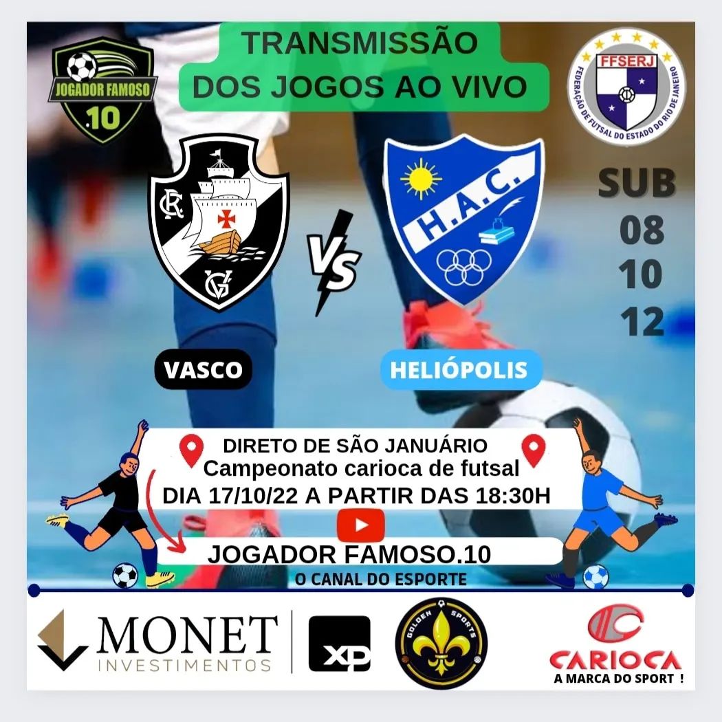 Futsal Base: Vasco enfrenta o Heliópolis nesta 2ª em São Januário em 3 categorias com Youtube