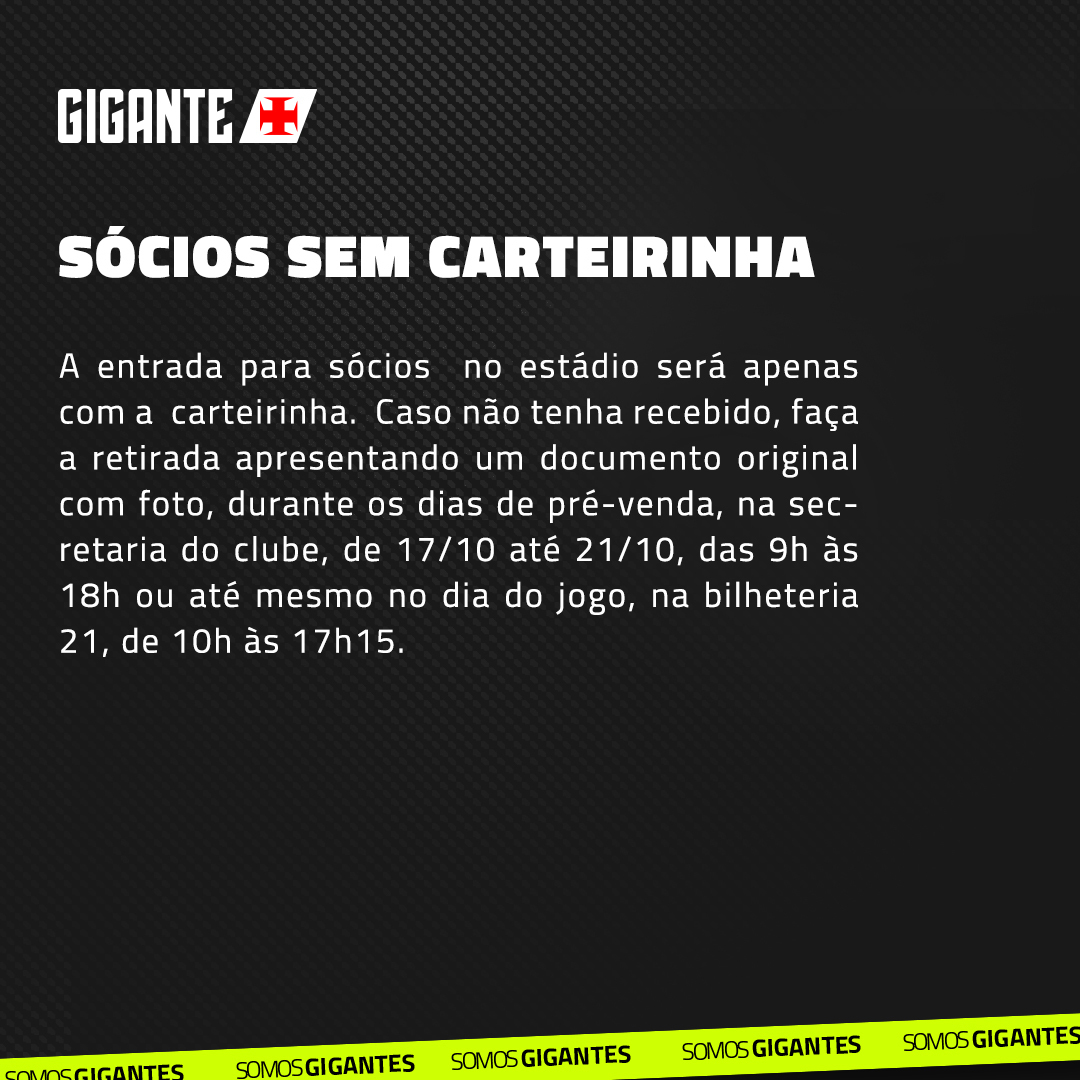 A entrada no estádio para sócios será feita exclusivamente com o ingresso carregado na carteirinha.
