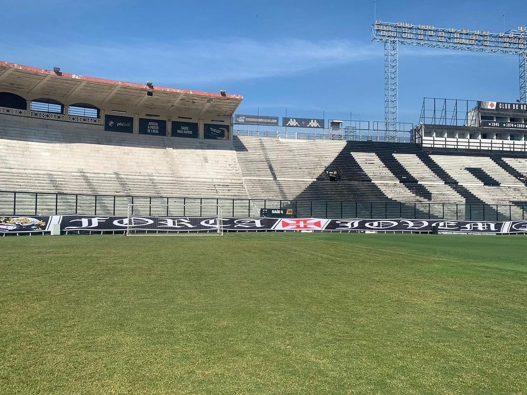 Faixa da Força Jovem já está na estendida na arquibancada de São Januário; veja foto