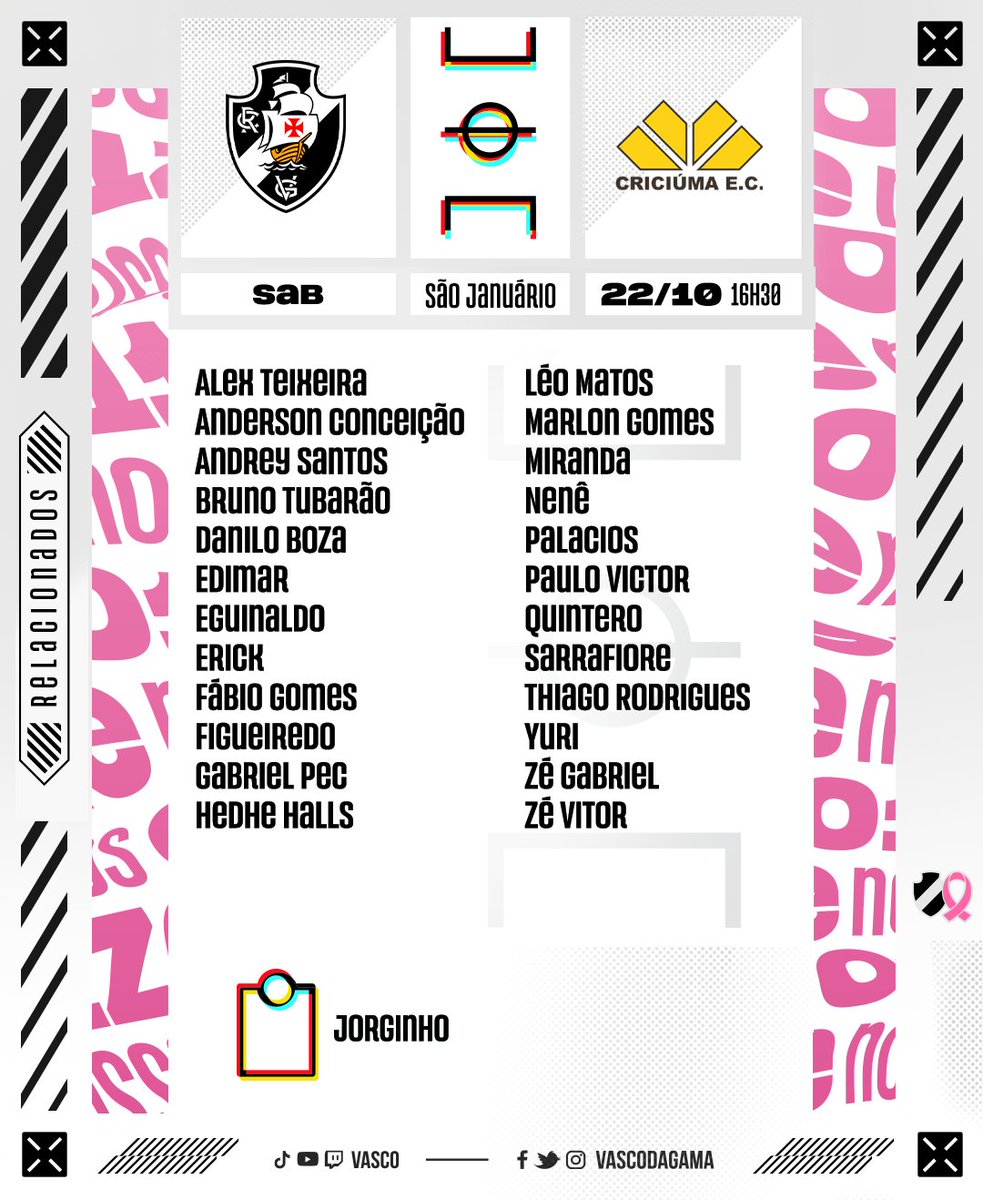 RELACIONADOS! Fábio Gomes, Léo Matos e Paulo Victor são as novidades da lista de jogadores para enfrentar o Criciúma.