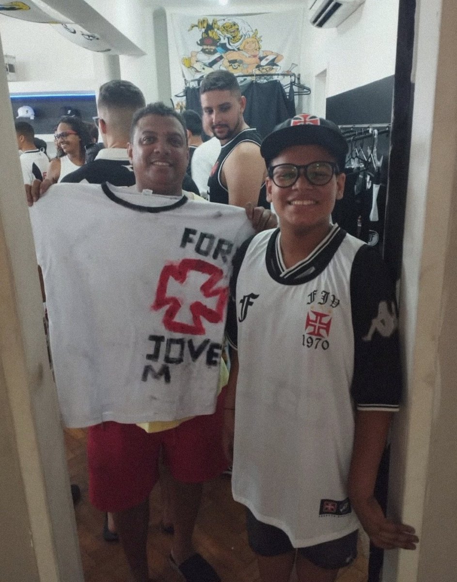 Garoto que pintou uma camisa da Força Jovem em casa recebeu uma oficial da organizada em São Januário. Isso sim é Vasco!