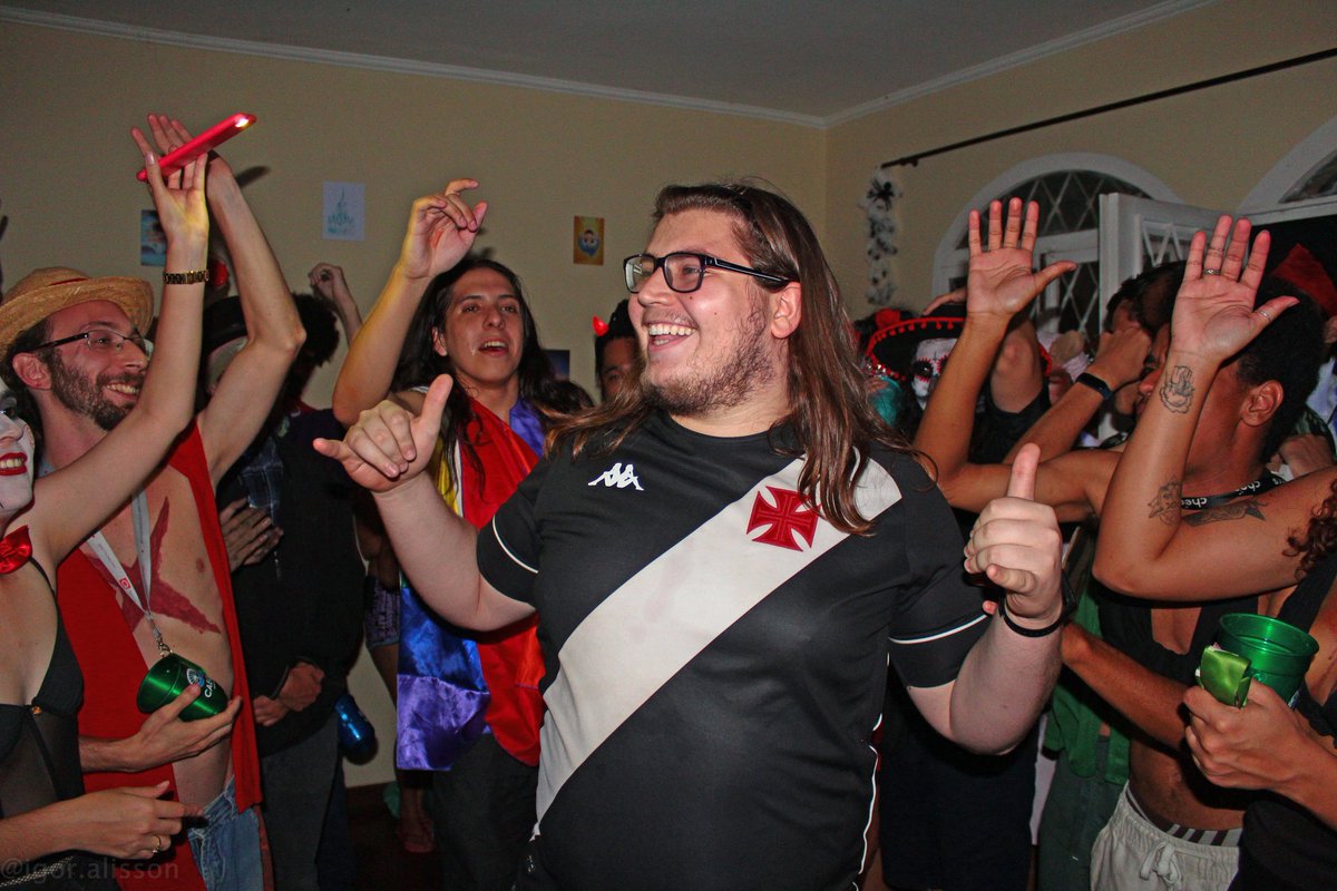 E sábado q teve festa da Unicamp, esse cara chegou atrasado no rolê pq tava vendo jogo do @VascodaGama e tava com a camisa... No meio da festa descobriu que era à fantasia, se inscreveu e venceu a melhor fantasia porque SIMPLESMEMTE estava de @Casimiro !