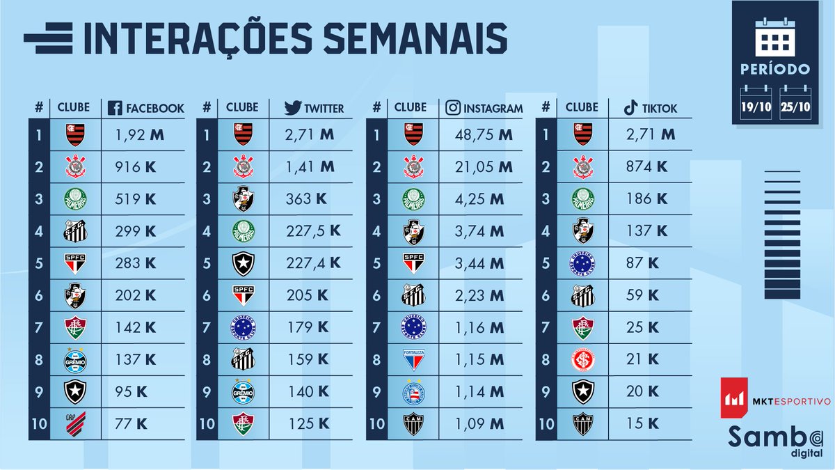 Vasco figura no top 10 de clubes brasileiros de interações semanais nas redes sociais; veja