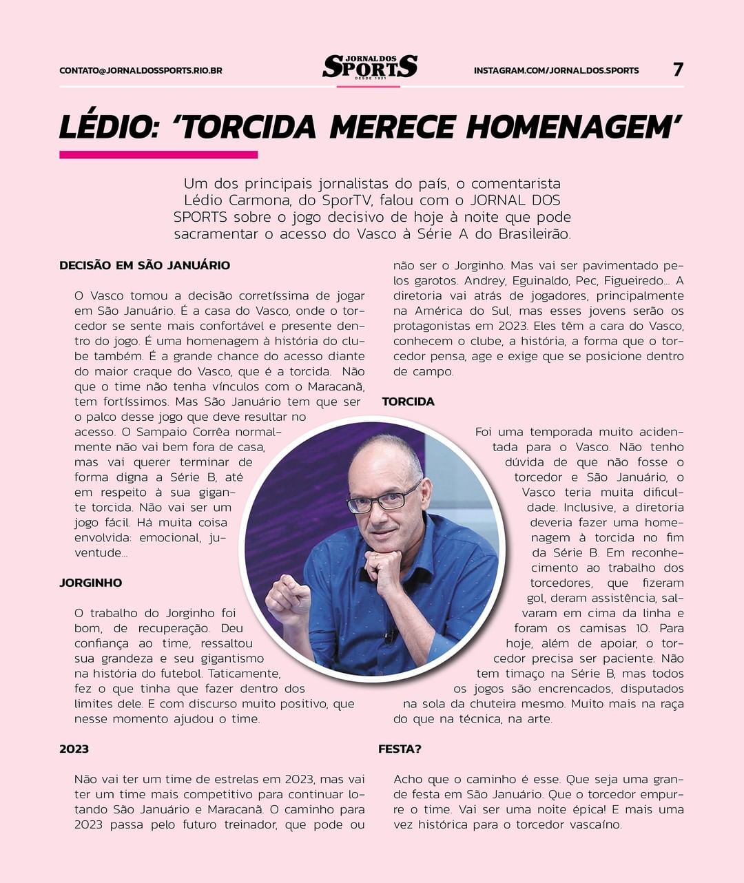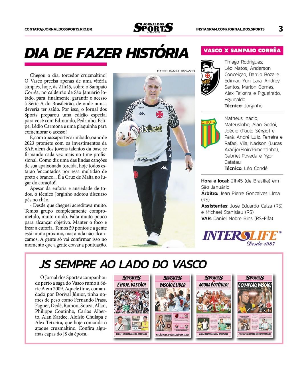 Jornal dos Sports será distribuído nos arredores de São Januário antes de Vasco x Sampaio Corrêa
