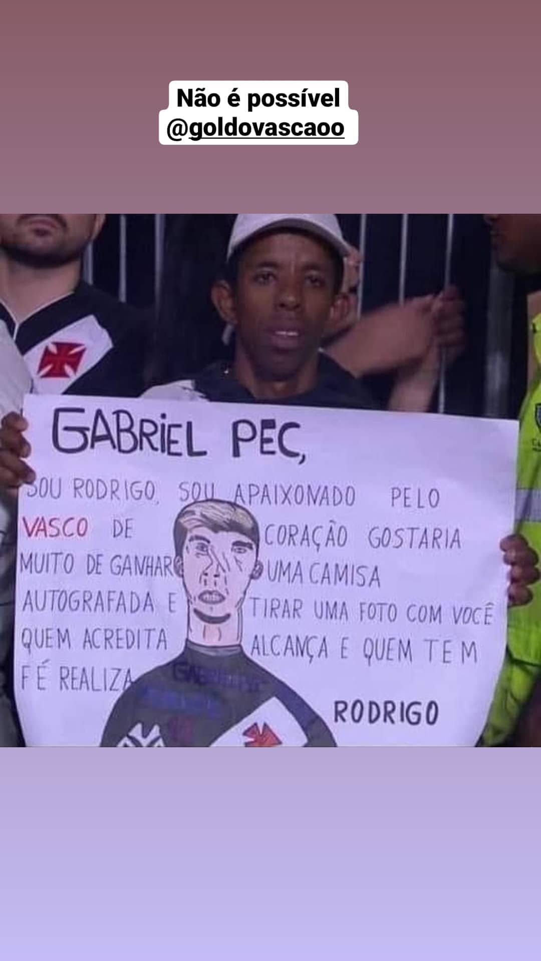 Torcedor pediu camisa de Gabriel Pec em cartaz com caricatura em São Januário; veja foto