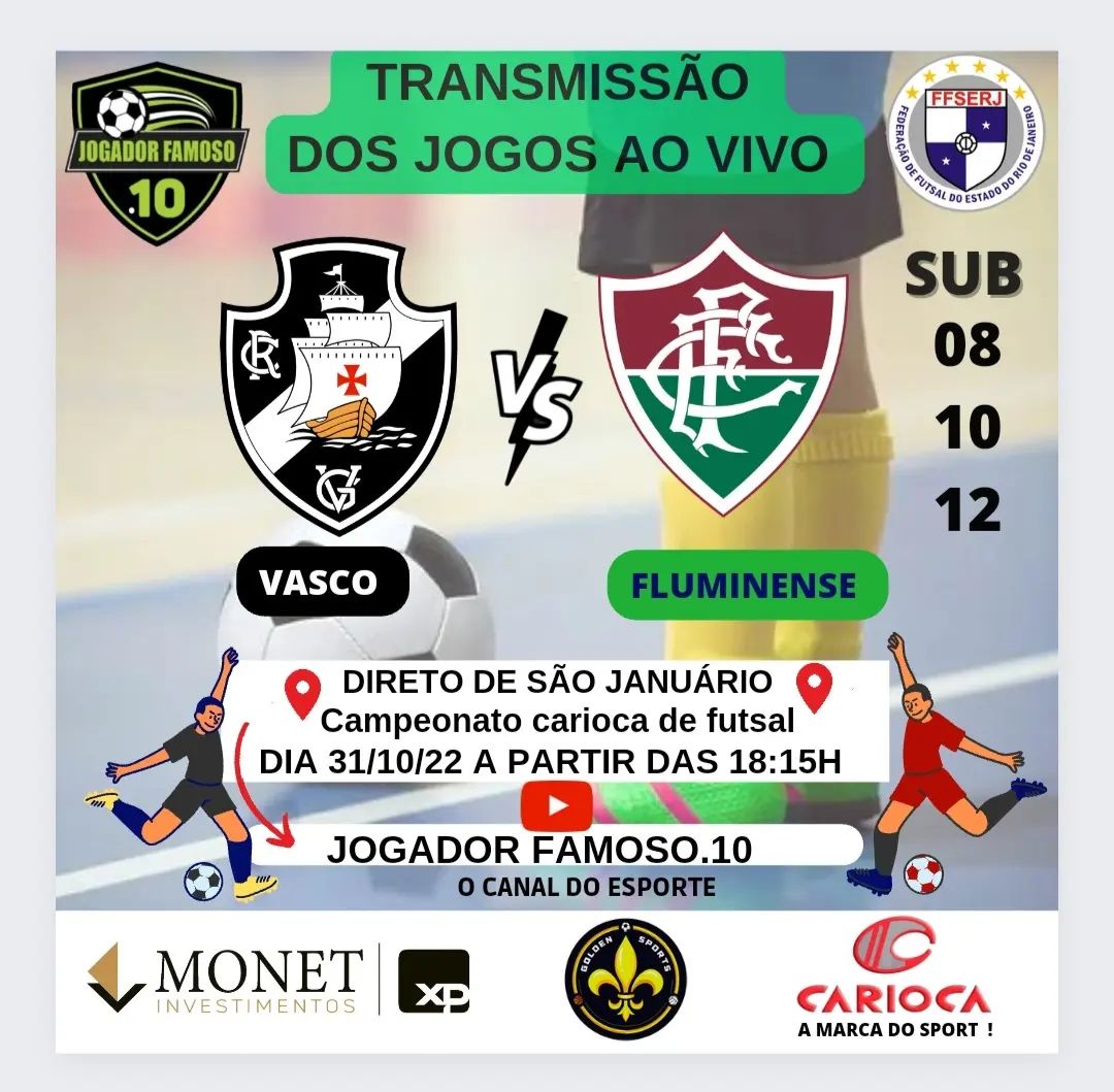 Futsal Base: Vasco enfrenta o Fluminense nesta 2ª em São Januário em 3 categorias com Youtube