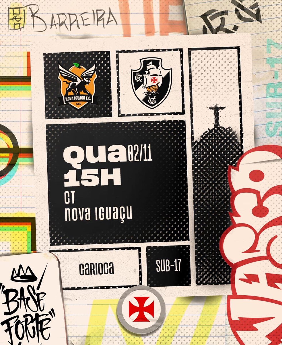 Juvenil: Vasco faz o 2º jogo da semi do Estadual Sub-17 contra o Nova Iguaçu nesta 4ª às 15h fora de casa