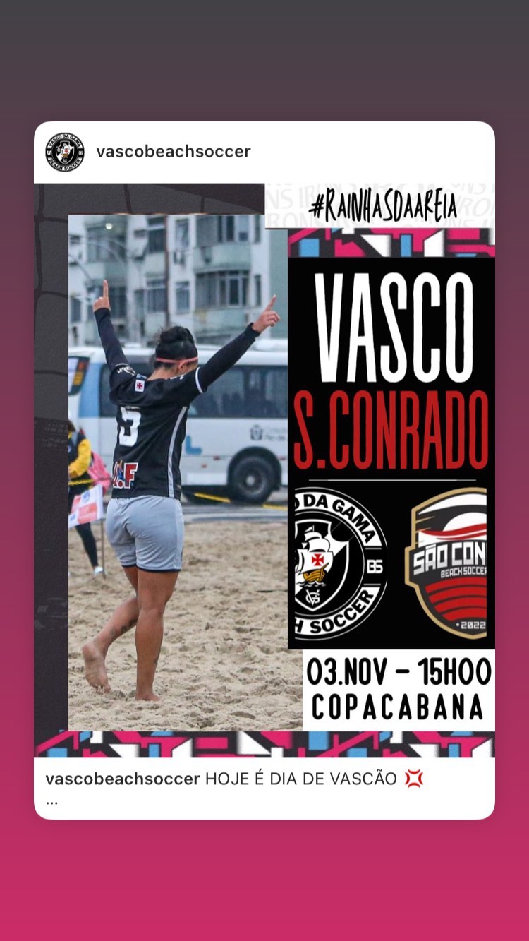 02/11/22 - Beach Soccer Feminino: Vasco estreia no Campeonato Carioca nesta 4ª às 16h30 contra o América na Praia de Botafogo