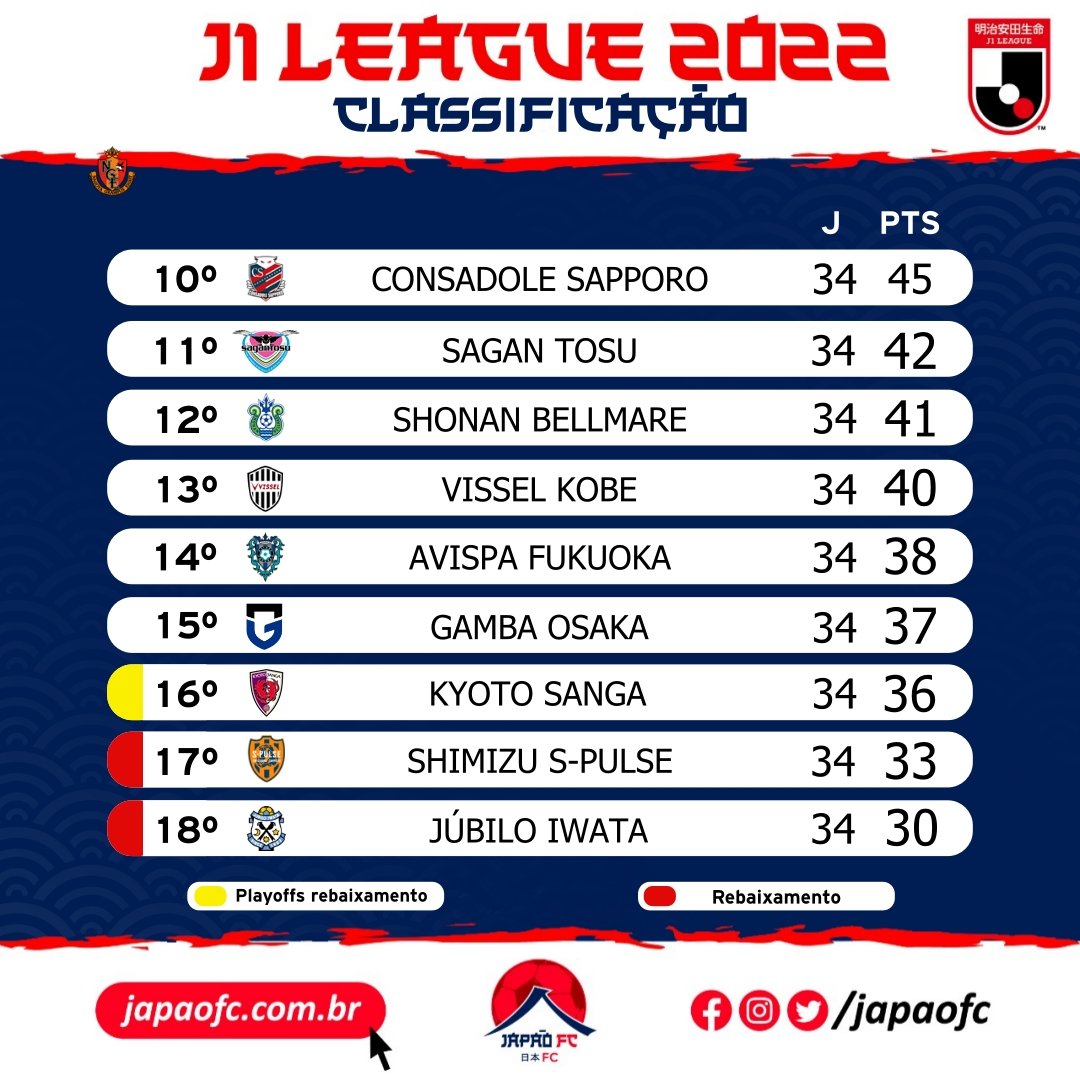 📋| A CLASSIFICAÇÃO FINAL DA J1 LEAGUE 2022
