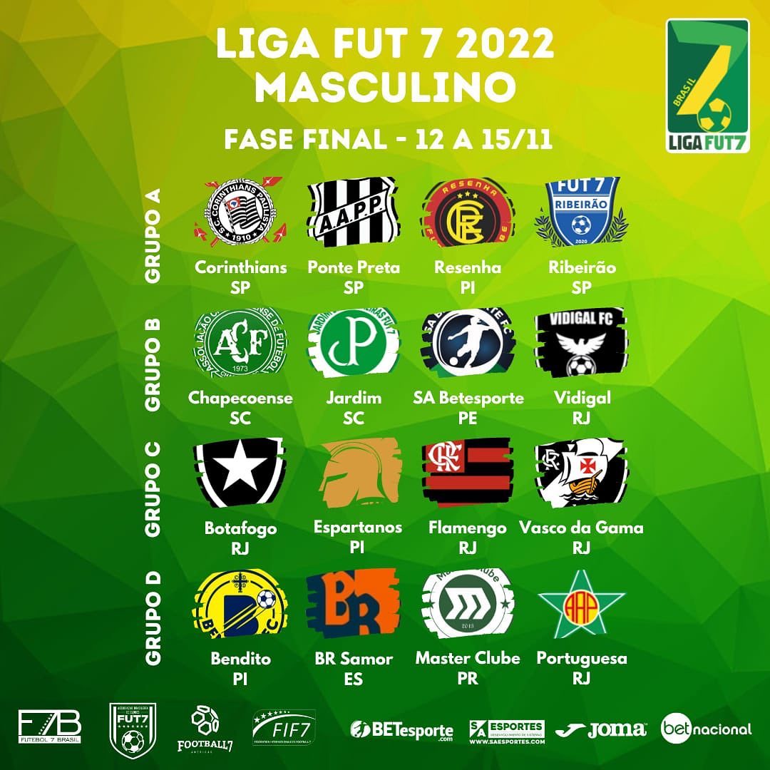 Futebol 7: Vasco disputa fase final da Liga Fut 7 a partir de 12/11; grupo tem Urubu, Botafogo e Espartano-PI