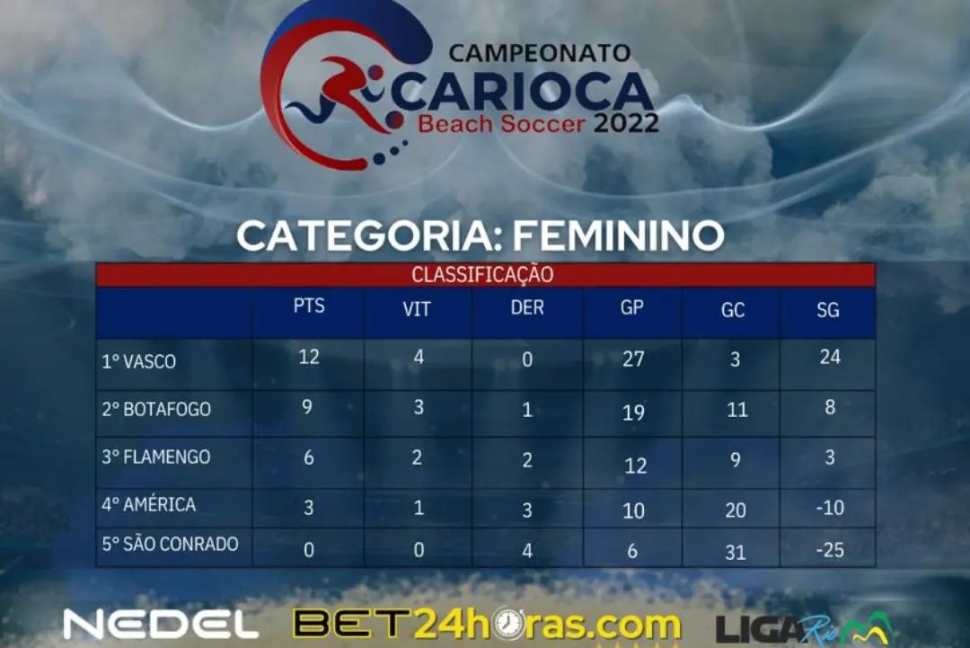 Assim ficou a classificação final que coroou a equipe do @vascobeachsoccer como Bicampeão Carioca de Beach Soccer Feminino 2022, seguido pelo