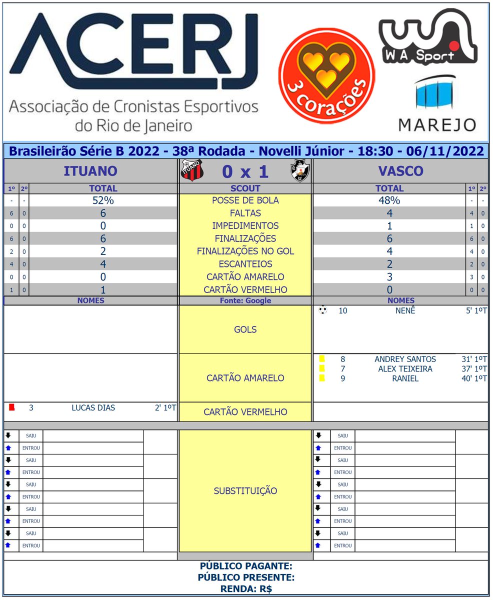 Scout do 1º Tempo de Ituano e Vasco pela 38ª Rodada do Campeonato Brasileiro da série B 2022 no Novelli Junior (Fonte: Google) #Acerjinforma #BrasileiraoSerieB #ITUxVAS #Ituano #Vasco @BrasileiraoB @ituanooficial @VascodaGama