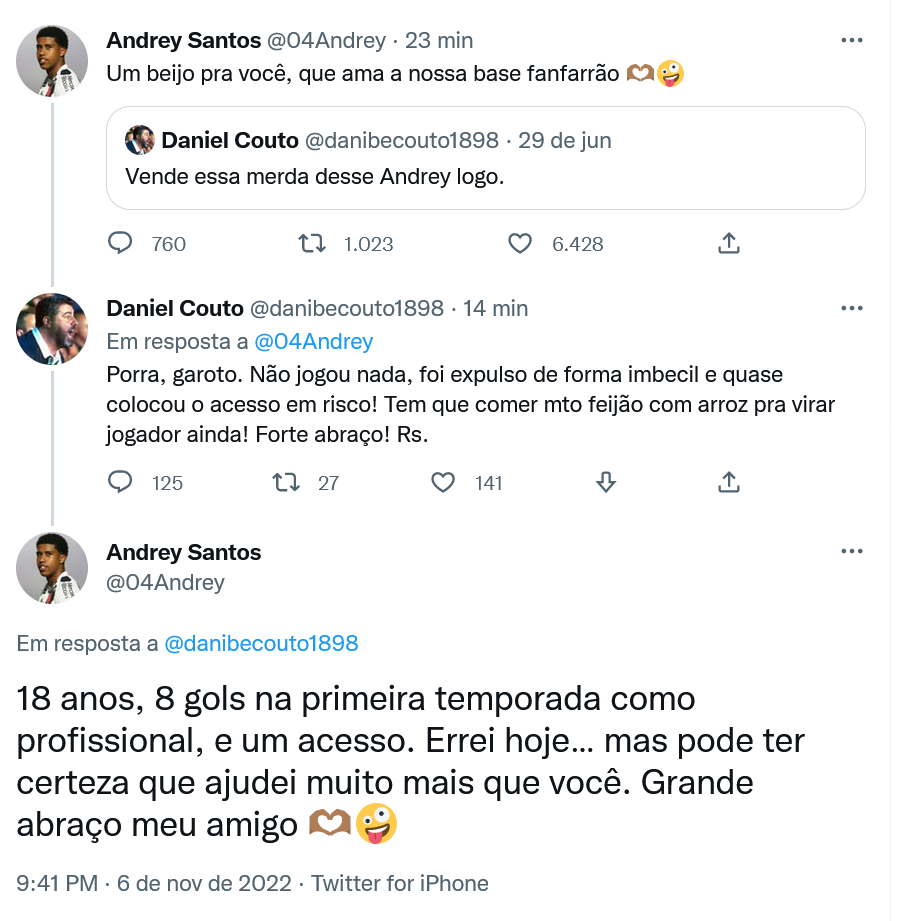 Após expulsão contra o Ituano e acesso, Andrey Santos discute com torcedor no Twitter: 'Ajudei muito mais que você'