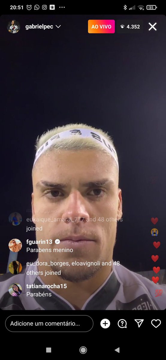 O colombiano Fredy Guarin parabenizou o Vasco e o Gabriel Pec pelo acesso a Série A.
