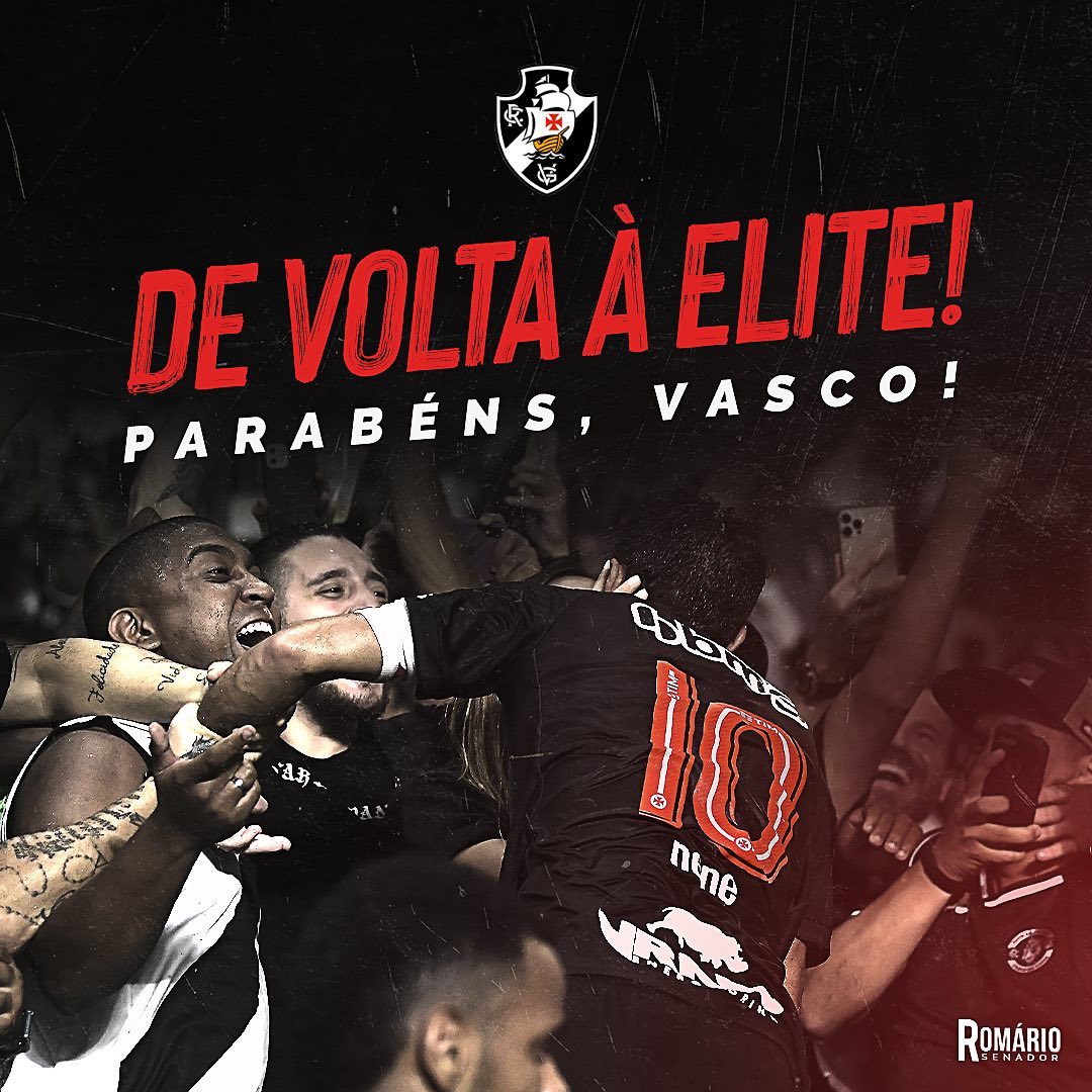 Hoje a festa é dos cruzmaltinos! 👏🏾👏🏾👏🏾 Ao vencer o Ituano, o Vasco garante seu retorno à Série A. Os torcedores sofreram, mas não deixaram de acreditar e agora o Gigante da Colina está de volta ao seu devido lugar. Parabenizo os jogadores, toda comissão técnica e, claro, a torcida que sempre jogou junto. Agora é continuar focado e trabalhar duro para avançar na série A. Parabéns, galera! Aproveitem a festa! 🚀👏🏾👏🏾👏🏾